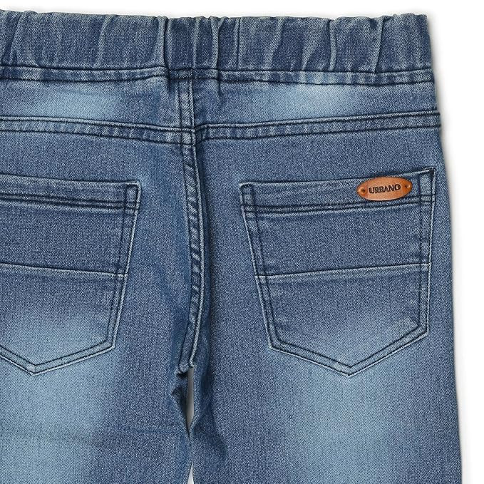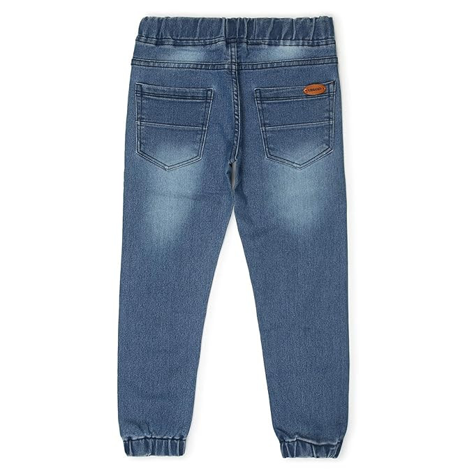 Stylish Washed Light Blue Jogger Jeans for Boys - Comfortable Elasticized Waistband with Drawstring and Elasticized Hem Cotton Lycra with Stretch (98% Cotton 2% Elastane) - Offers extra comfort and flexibility Slim Fit; Mid-Rise; Regular Length; Diagonal Front Pockets Perfect for Casual, Party & Evening Wear