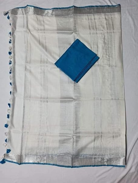 Crafted with intricate handloom weaving for a touch of tradition Made from lightweight and breathable linen fabric for all-day comfort Comes with a contrast blouse piece for added style versatility Perfect for both formal and casual occasions Length : 6.4 Meters (0.9 Meter Blouse Piece included in the Package