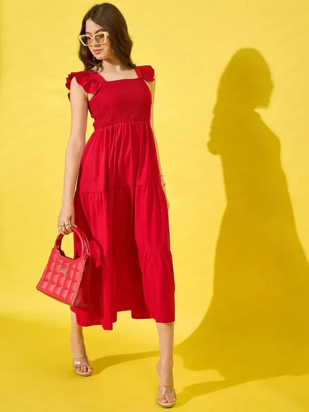 his charming maxi dress features a square neckline and ruffled straps, made of polyester, adding a feminine touch to your wardrobe. The smocked high waist creates a flattering silhouette, while the flowing skirt enhances movement. Perfect for summer outings or casual gatherings, this dress combines style and comfort for any occasion. The model (height 5'8) is wearing a size M.