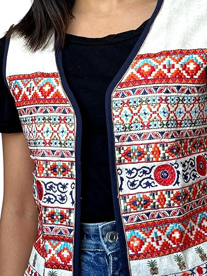 Jacket/Koti/Shrug can be paired with any plain/printed top for best results. You may also try these with your tees to give a fusion look. Made with finest kutch work embroidery designs, this will surely make you feel wow. Full embroidery work for the Ethnic & Classy look; Warning : Do Not Bleach Color Name: White; Age Range Description: Adult; Closure Type: Drawstring; Color Map: White