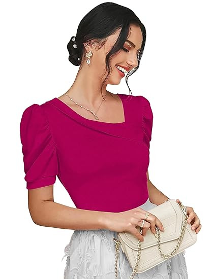 Material : Polyester Blend Neck : Asymmetric Neck Sleeves : Puff/ Balloon Sleeves