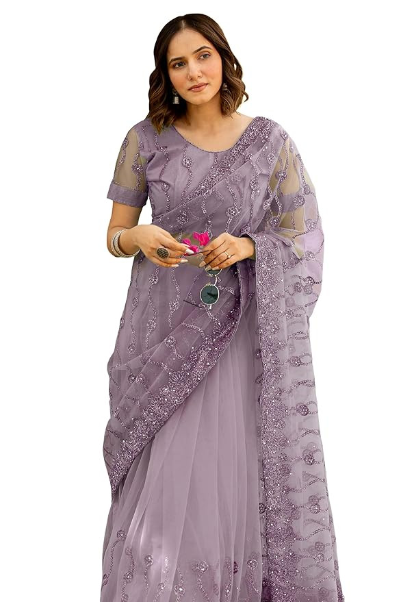 Subham Women's Net Embroidered Saree with Blouse Piece