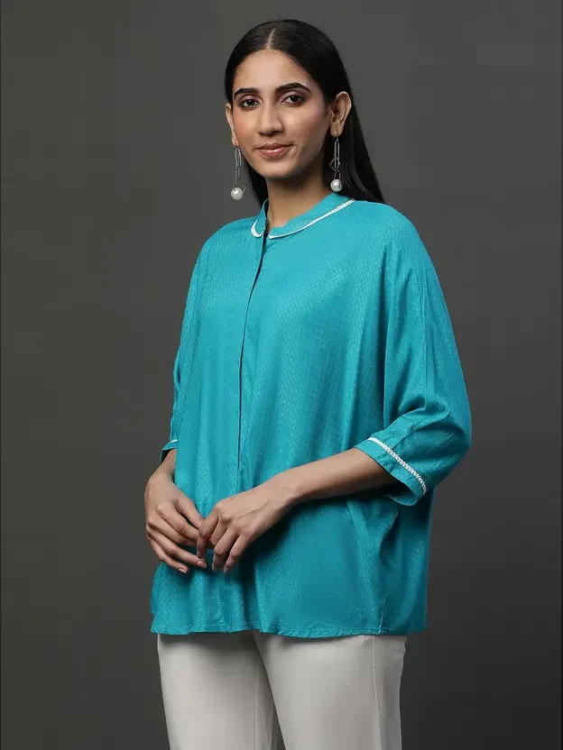 Casual Regular Sleeves Solid Women Blue Top