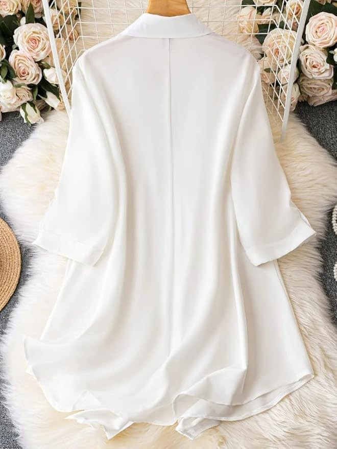 Febric Leriya Fashion Western Dress || Rayon Solid Button Front Shirt Dress for Women || Roll Tab Sleeve & Collared Neck Flared Dress || Office || Summer Short Dresses for Women.