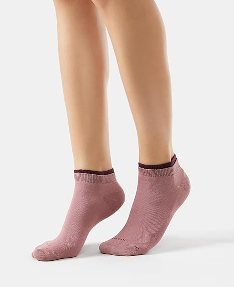 Elastane Body for maximum comfort and stretch. Elastane welt for no-sag grip. Contrast stripe welt in feminine color. Low Show ankle socks for all day comfort. Gentle wash 40°C; Do not bleach; Do not wring; Flat dry in shade; Do not iron; Do not dry clean