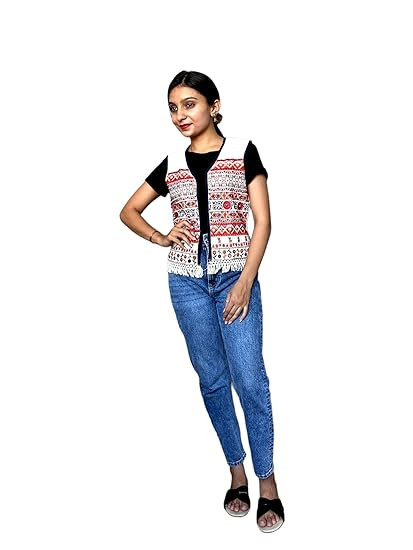 Jacket/Koti/Shrug can be paired with any plain/printed top for best results. You may also try these with your tees to give a fusion look. Made with finest kutch work embroidery designs, this will surely make you feel wow. Full embroidery work for the Ethnic & Classy look; Warning : Do Not Bleach Color Name: White; Age Range Description: Adult; Closure Type: Drawstring; Color Map: White